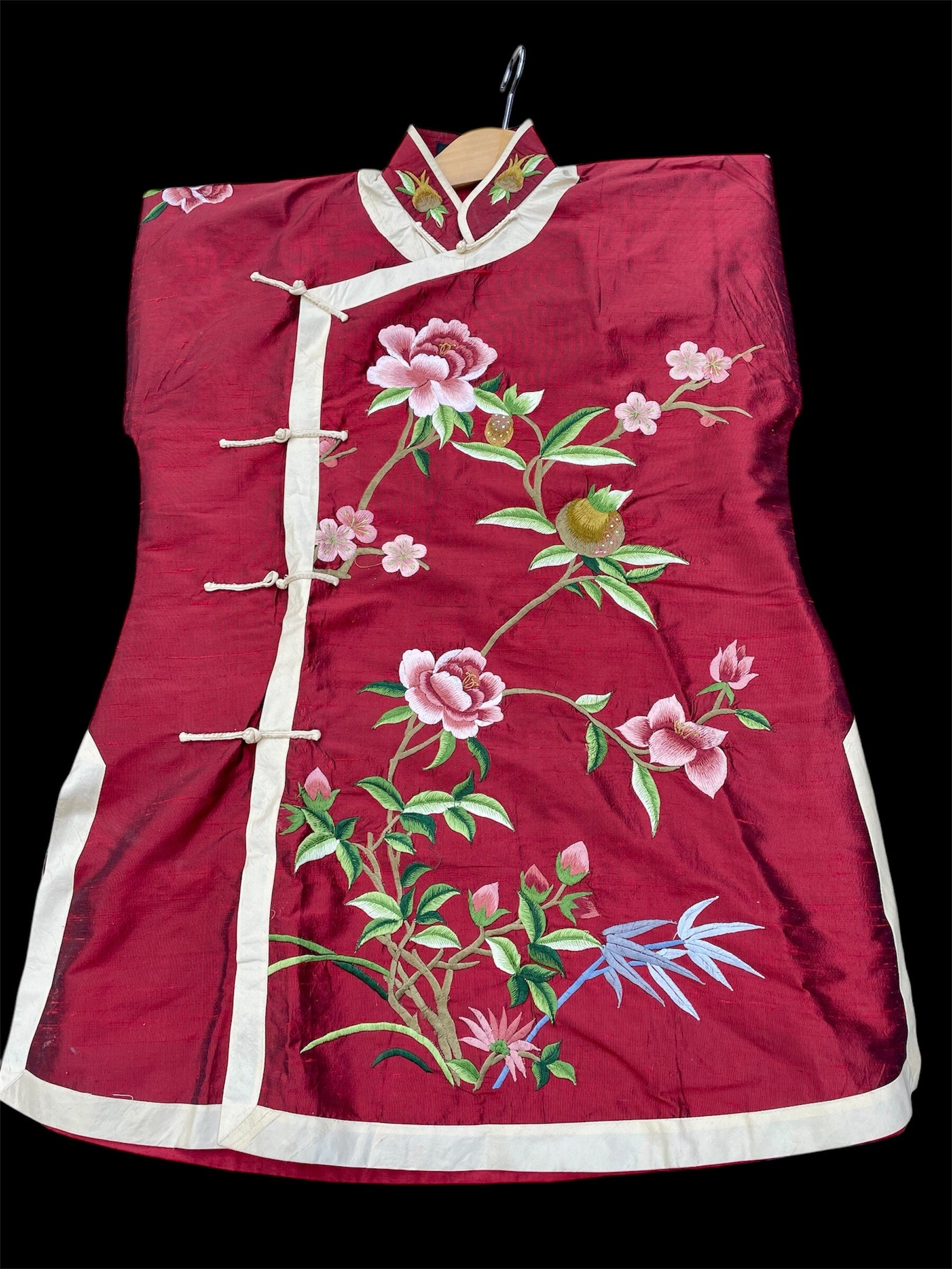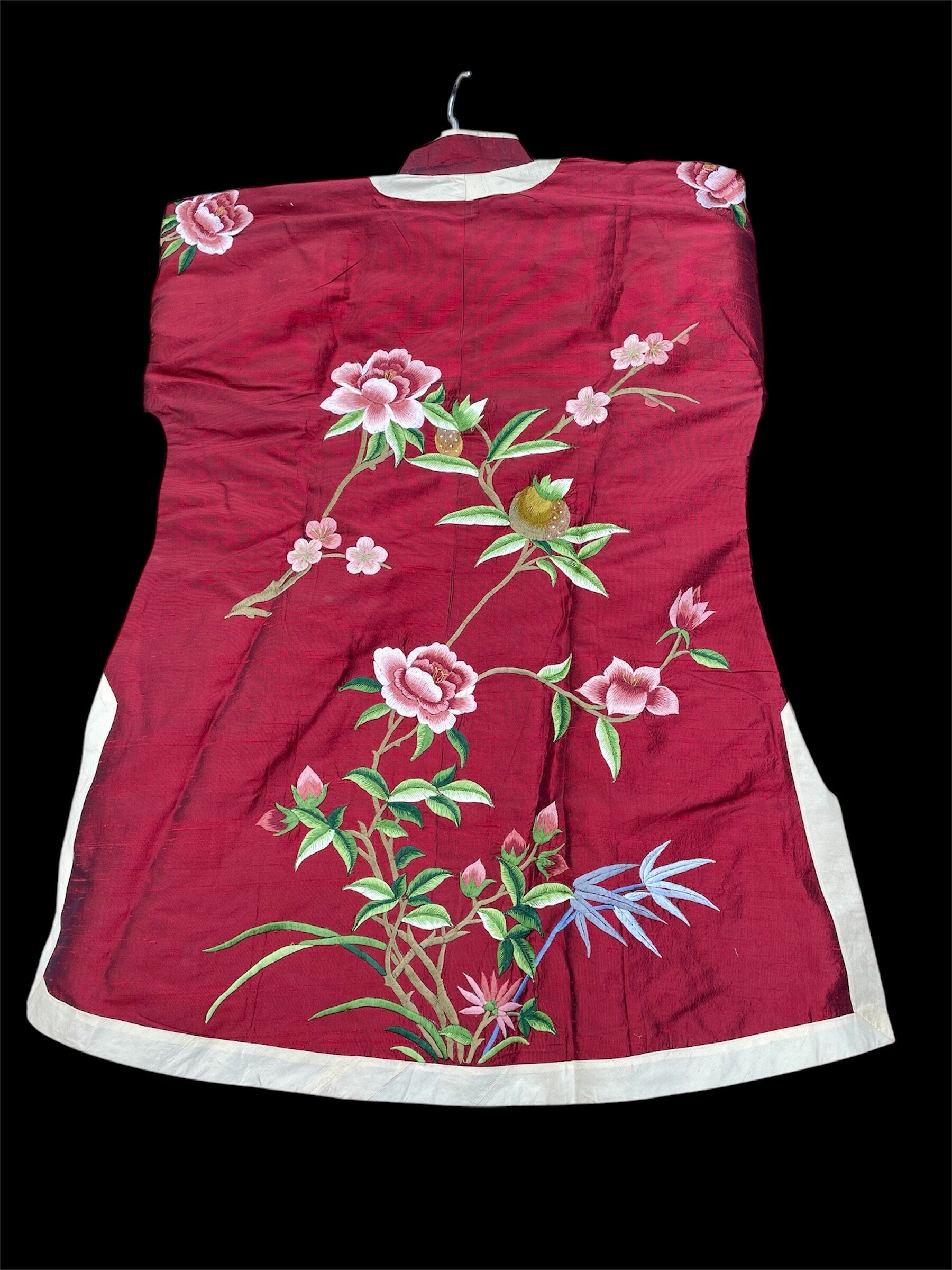 Geborduurde Chinese zijde kimono, vol geborduurde bloemen. Maat 42.